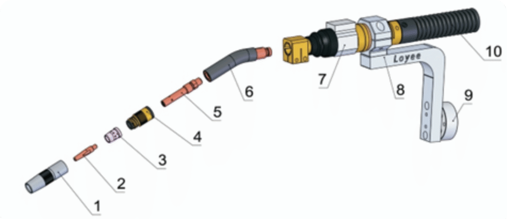 Para garantir que seus robôs de soldagem mantenham o desempenho e a qualidade ideais, é vital utilizar consumíveis de alta performance. Nossa linha inclui todos os componentes críticos da tocha, desde o Bocal Cônico e Bico de Contato até o Difusor de Gás e o Pescoço (como o modelo 22 graus refrigerado a ar), além de itens de segurança como o sistema Anti-Colisão. O uso de peças de reposição de qualidade garante a estabilidade do arco, a transferência de corrente eficiente e a máxima durabilidade do seu equipamento.